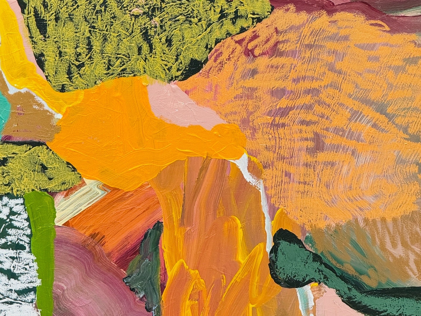 His work explores the space between the real world and imagined landscapes — places where colour moves freely and emotion shapes the horizon.